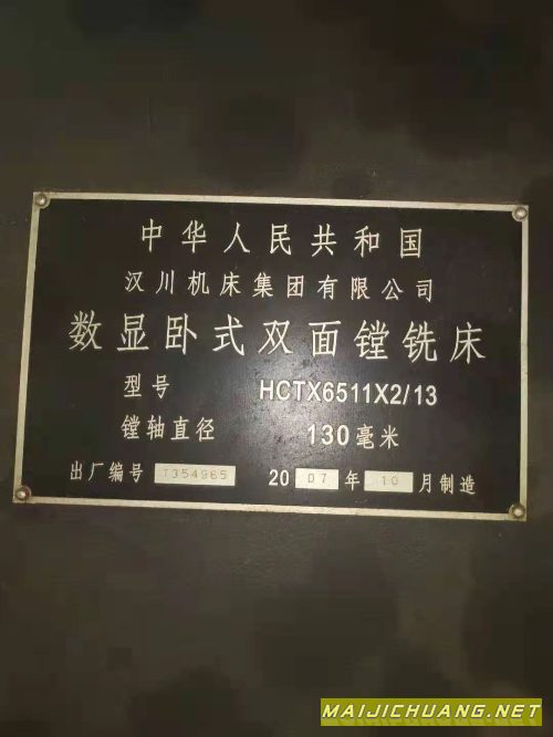 在位出售2007年汉川HCTX6511X2/13卧式双面镗,工作台1400X4000,少用设备。