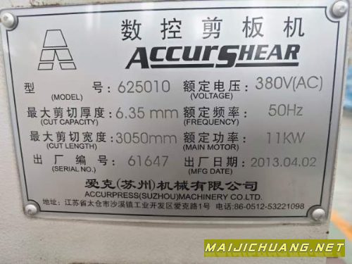 :洛阳仓库新春大酬宾出售2013年爱克数控剪板机,非常少.