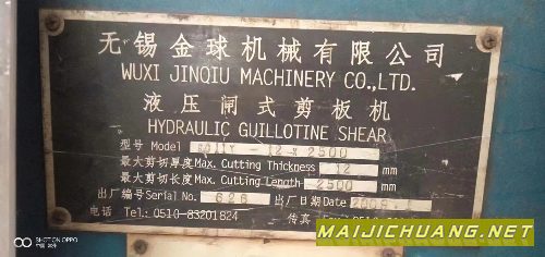 :出售无锡金球122500闸式剪板机